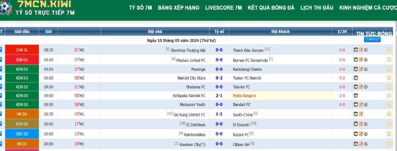 Trang 7 m chuyên cung cấp tỷ số bóng đá, KQBĐ chính xác mới nhất. Ngoài ra còn cung cấp các dịch vụ: Tỷ Lệ Kèo, Lịch Thi Đấu, Bảng Xếp Hạng... mới nhất